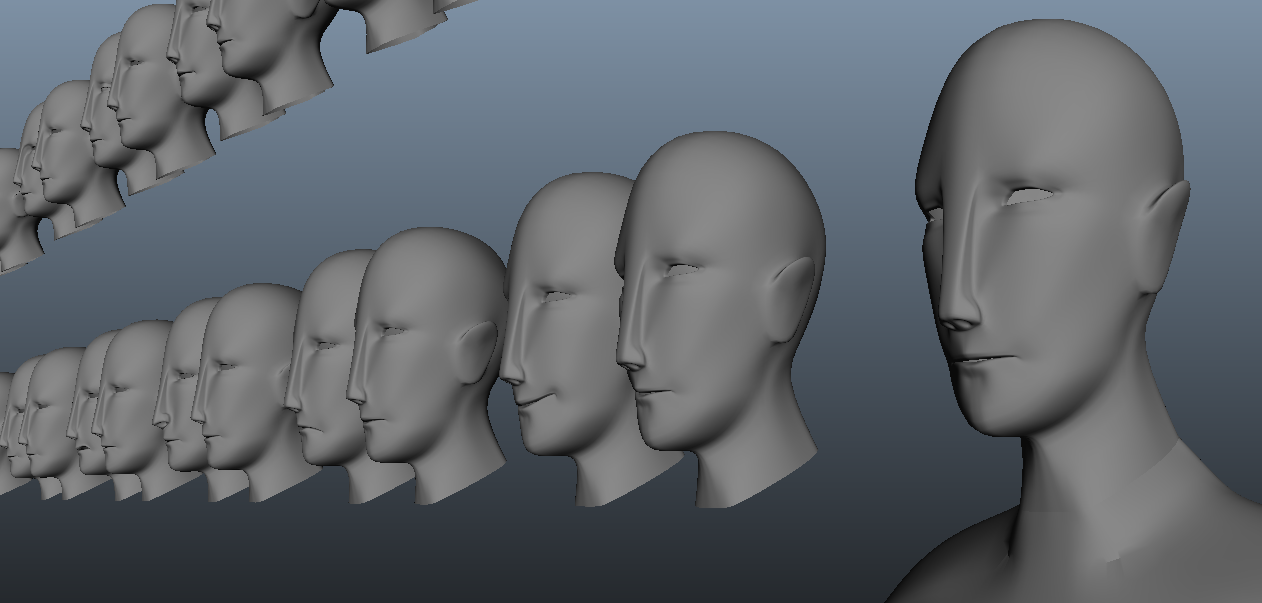 Being brand new to 3D graphics, modeling was both exciting and intimidating. What if I started it all wrong and by the end I didn't have time to fix it? What if I made it so badly that the animation looked terrible? What if I just failed everything?! I thought that in some ways, modeling would be a lot like sculpting in real life: you take a big block and hack away until it becomes something. And in a way it is like that, but it's also like solving a puzzle at the same time; you try to keep all your polygons four-sided, and you also have to keep in mind how the model will move. For example, you need to think about how the movement of the eyes will also affect the movement of the brow and cheeks, which will affect the movement of the mouth and nostrils....when something has to move, things get a lot more complicated.In retrospect, it was probably that paranoia that made me learn alot and appreciate modeling. I did my best to keep my design as simple as possible to keep render times down and make the animation process easier, while also maintaining a distinct visual style.